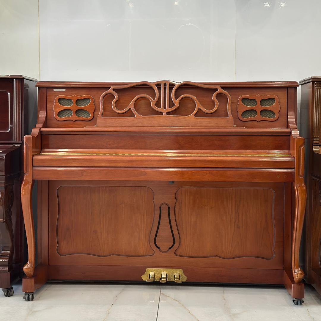 این مدل در دسته‌ی پیانوهای دیواری (Upright Piano) قرار می‌گیرد و از نظر ظاهری دارای سبک کلاسیک با جزئیات چوبی ظریف در قسمت بالایی بدنه است که جلوه‌ای گرم و اصیل به فضا می‌دهد. رنگ CMF معمولاً در طیف قهوه‌ای مات یا نیمه‌براق عرضه می‌شود که برای دکوراسیون‌های خانگی و آموزشی بسیار شیک و مناسب است.